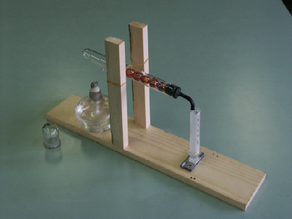 5 注射器内の空気がなくなると、注射器のシリンダーは下がり、試験管のゴム栓部分が下がる。