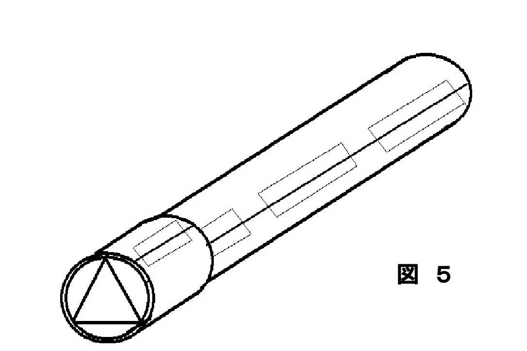 10.図5のように、細長い工作用紙を万華鏡の筒に巻きつけ、はしをセロハンテープでとめて、短い筒を作ります。このとき万華鏡の筒と短い筒をはりあわさないように注意してください。