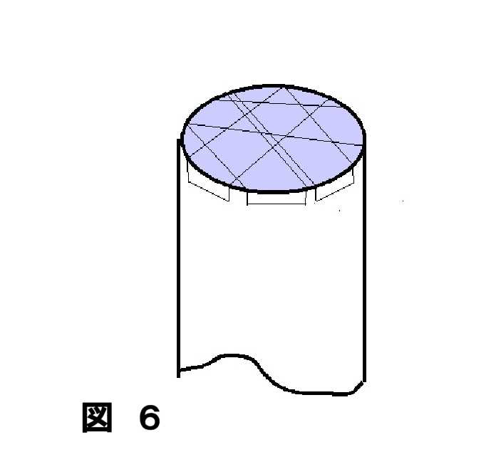 12.万華鏡の筒のはしに偏光板をのせ、図6のようにセロハンテープではりつけます。
