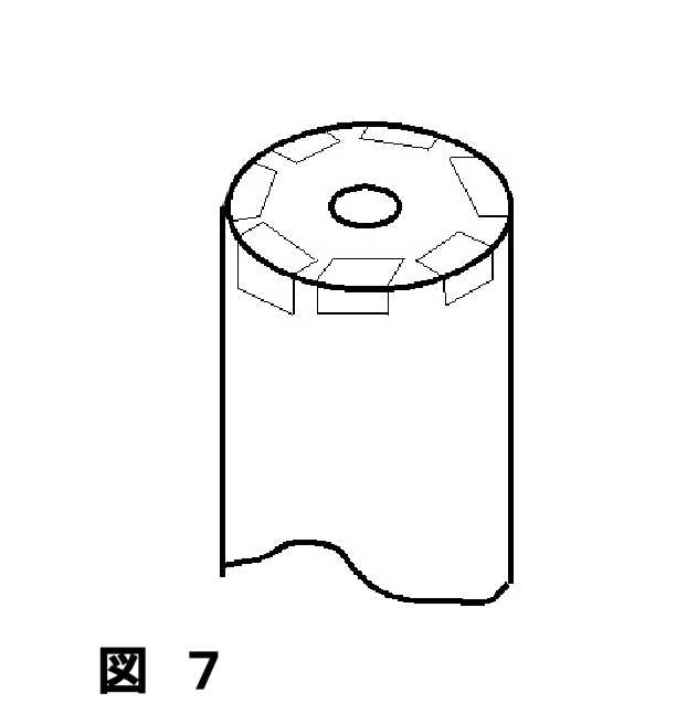 14.穴のあいた小さな工作用紙を万華鏡の筒のもう一方のはしに、図7のようにはりつけます。