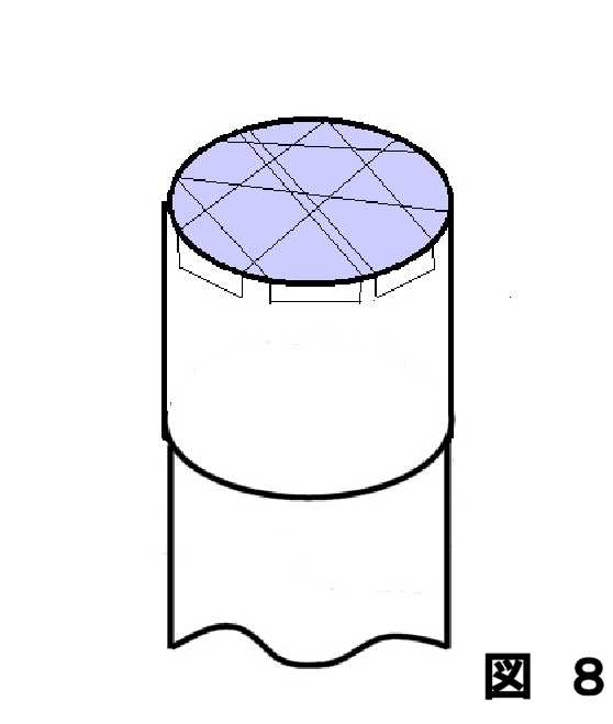 15.短い筒を万華鏡にさし、短い筒のはしに、図8のように偏光板をセロハンテープではりつけます。