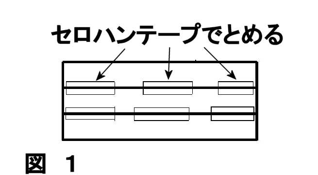 2.鏡の裏面を上に向け、保護フィルムをきれいにはがし、3枚の鏡を図1のようにならべ、セロハンテープではりあわせます。