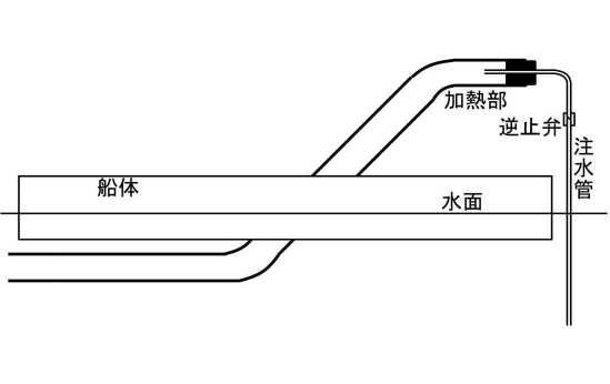 また、注水管への給水方法も大型ポンポン船の際に使用した注水槽を廃止し、注水管の途中に逆止弁を取り付け、水中から吸水することにした。
