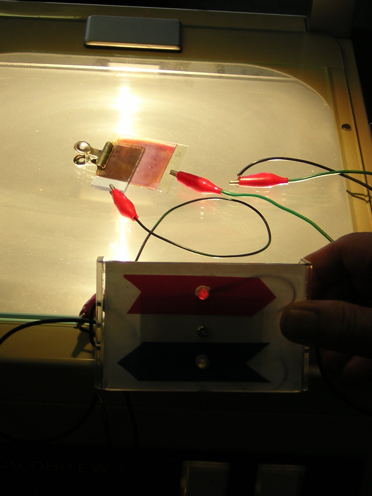 D 乾いたら対極に炭素を塗った透明電極をもってきて